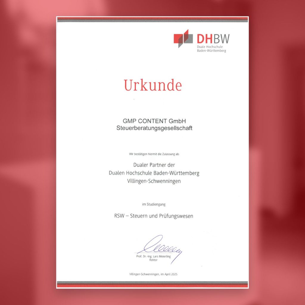 Wir freuen uns sehr über die offizielle Zulassung als dualer Partner der Duale Hochschule Baden-Württemberg (Villingen-Schwenningen) im Studiengang RSW – Steuern und Prüfungswesen! 🎓